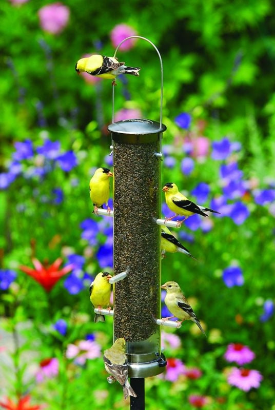 Aspects Quick-Clean Seed Tube Feeders combine heavy die-cast metal caps, ports, bases and a clear UV stabilized polycarbonate tube to make these feeders an investment thatlasts a lifetime. A built-in seed deflector in the base allows birds to remove every last seed. Redesigned feed ports on the seed tube model have a raised ridge to divert rainwater and perches are part of the seed port. Add aseed trayto attract more birds, and protect the feeder from the elements with anAspects dome. Available in four distinct finishes.