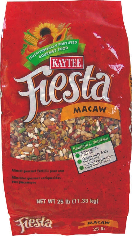 The Fiesta Macaw Food combines the best fruits, Vegetables, Nuts and Specialty Seeds Into A Nutritious, Gourmet Diet. The Variety of Colorful Shapes, Sizes, and Textures Makes Eating More Fun For Playful Birds. The food Supplies All of the Nutrients For Excellent Health. Product is made with Red Sunflower, Almonds, Safflower, Corn, Pumpkin Seed, Whole Peanuts, Ground Corn, Dried Bananas, Filberts, Driedpapaya, Pistachios, Oat Groats, toasted Corn Flakes, Raisins, Green Split Peas, Shelled Peanuts, Wrinkled Peas, Wheat, Buckwheat, Etc.