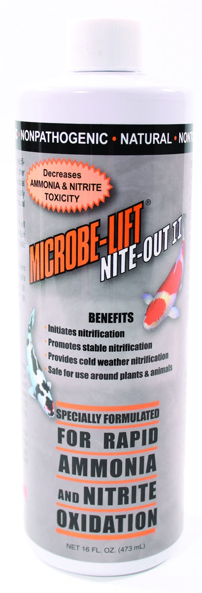 Designed specifically for aquarium waters that contain marine life. Its highly-specialized microbial consortium of nitrifying cultures are specially formulated to eliminate ammonia via a natural biological process termed nitrification. The cultures contain inMICROBE-LIFT/Nite-Out IIwill establish, promote or stabilize and maintain nitrification in aquarium waters, eliminating the toxic effect of ammonia.MICROBE-LIFT/Nite-Out IIliquid nitrifying bacteria contains select strains of Nitrosomonas, Nitrospira and Nitrobacter. Nitrosomonas oxidize ammonia to nitrite and Nitrobacter and Nitrospira oxidize nitrite to nitrate.