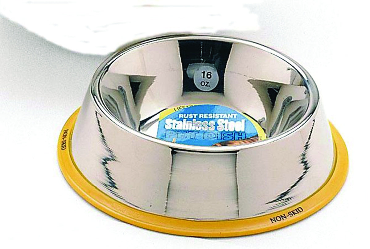 These No Slip Dishes are stainless steel, hygienic, rust resistant, and dishwasher safe.Color: Stainless SteelSize:  16 oz.