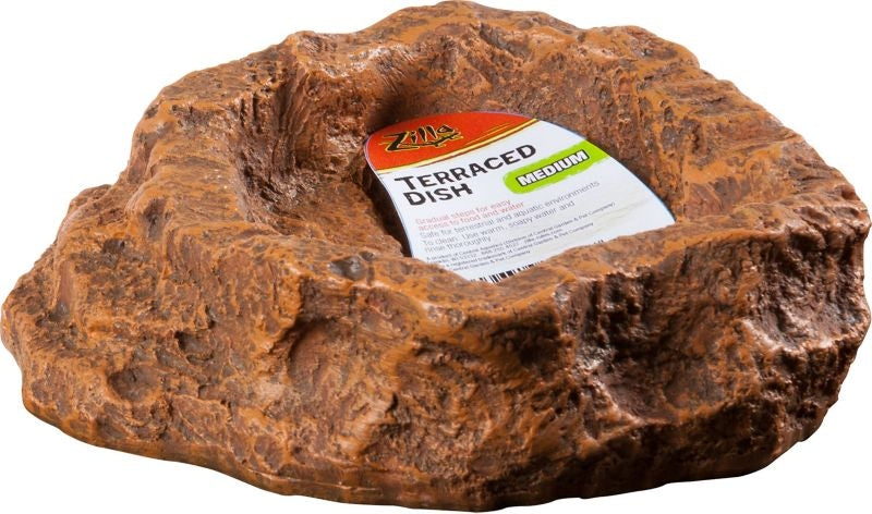 Gradual steps for easy access to food and water. Safe for terrestrial and aquatic environments.