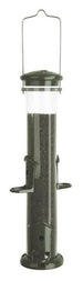 Durable construction features 4 unique metal seed ports that provide birds with a solid perch. May be hung or mounted on an audubon pole. Metal hanger attached. Fill with 2 pounds of thistle mix. Fully assembled.