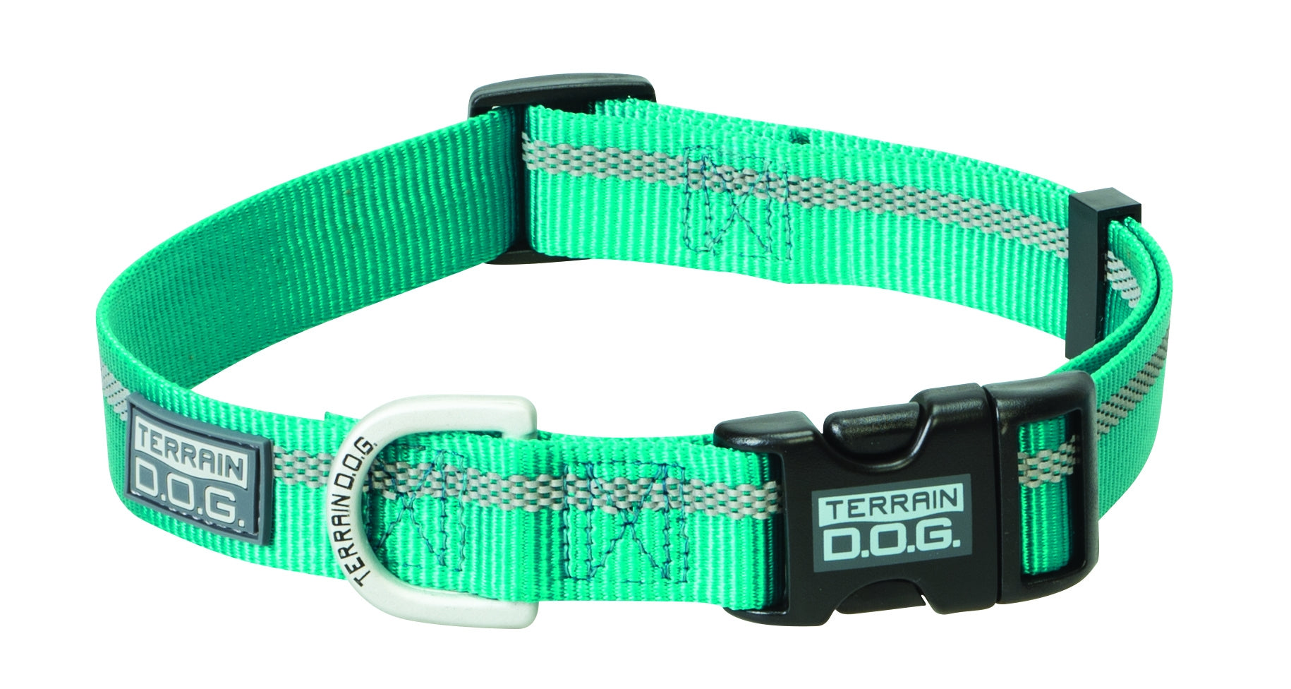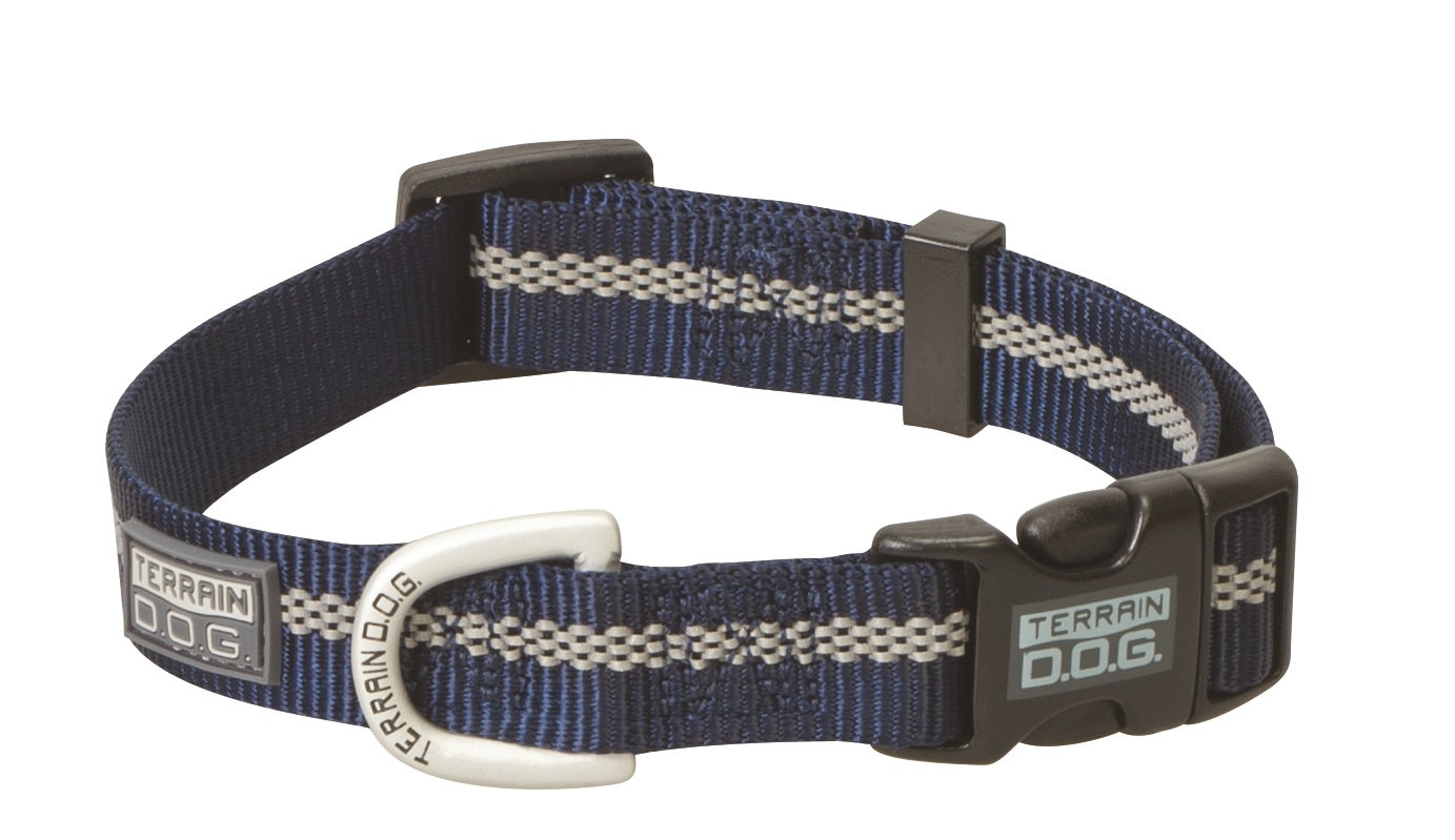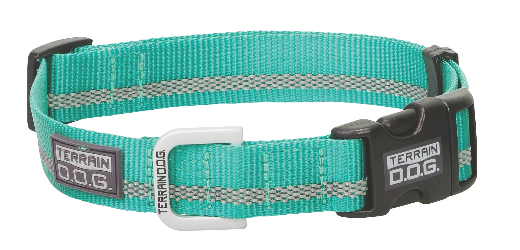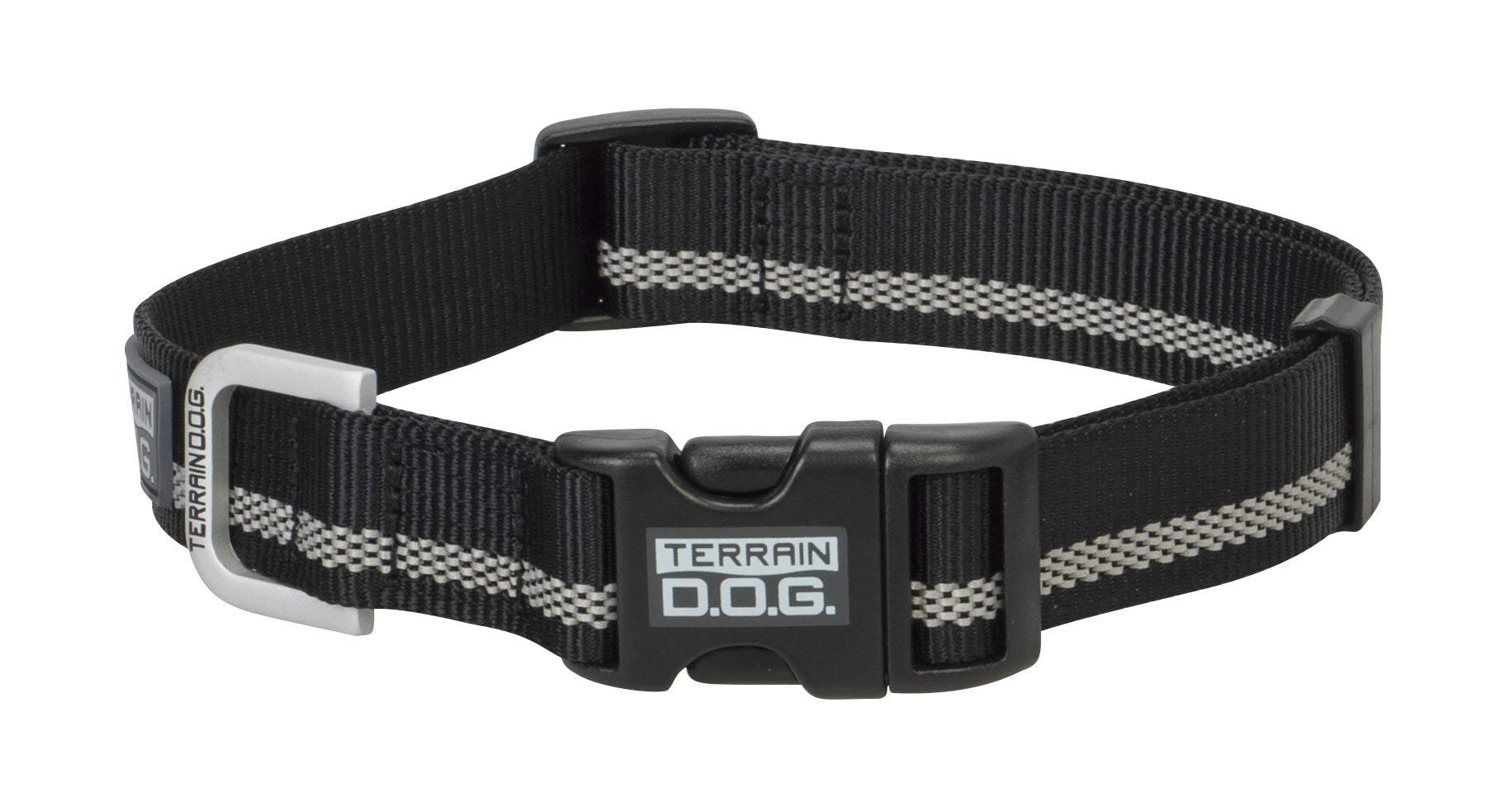 Perfect for any active canine, this adjustable nylon collar features a woven-in reflective safety stripe and extra durable anodized aluminum dee for performance you can count on. A quick-release buckle lends on-the-go ease to this precise-fit, single-ply collar.