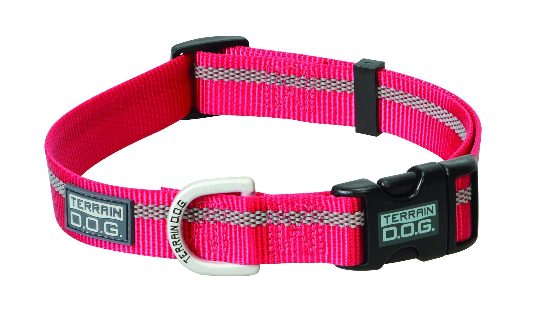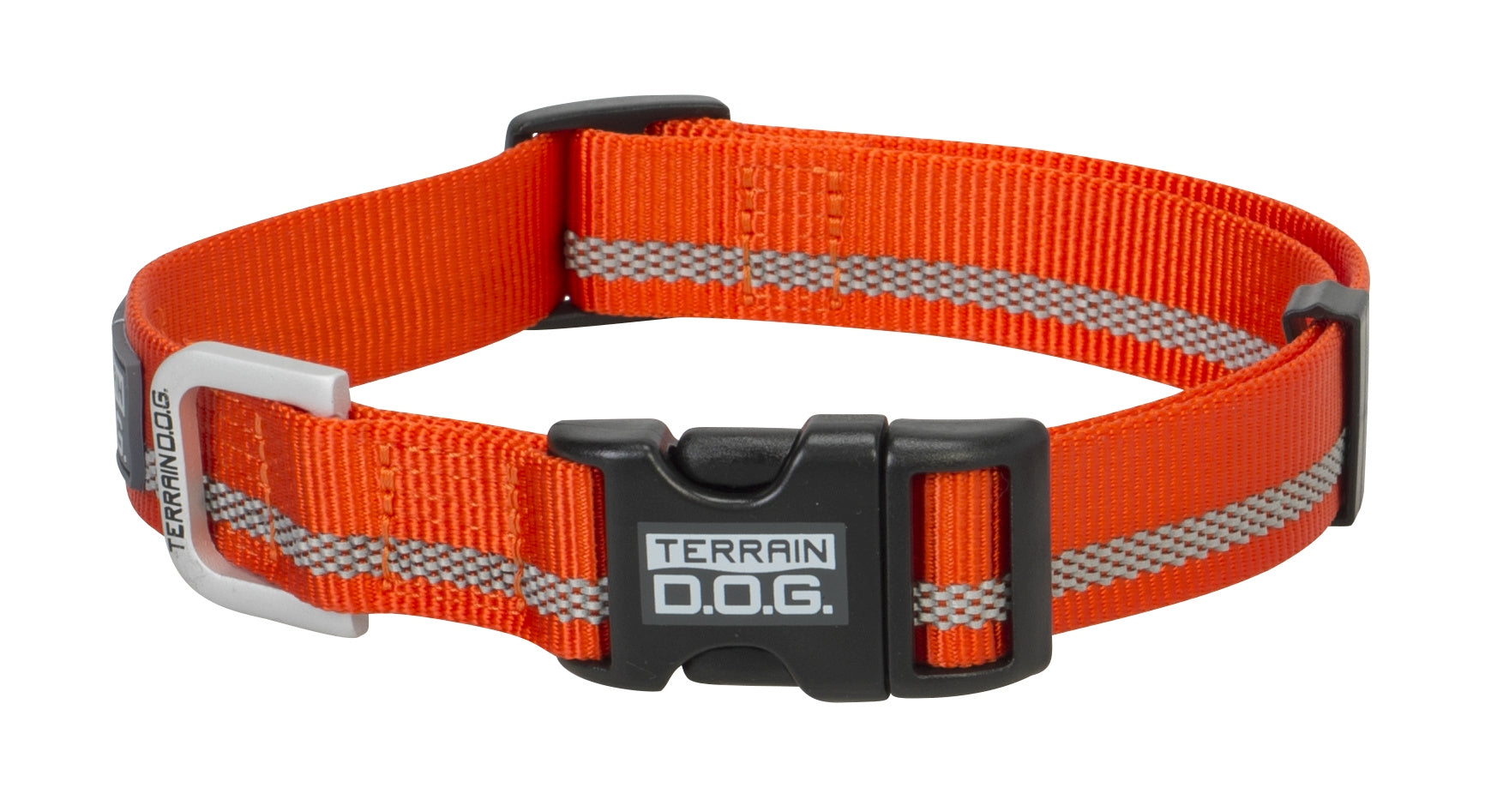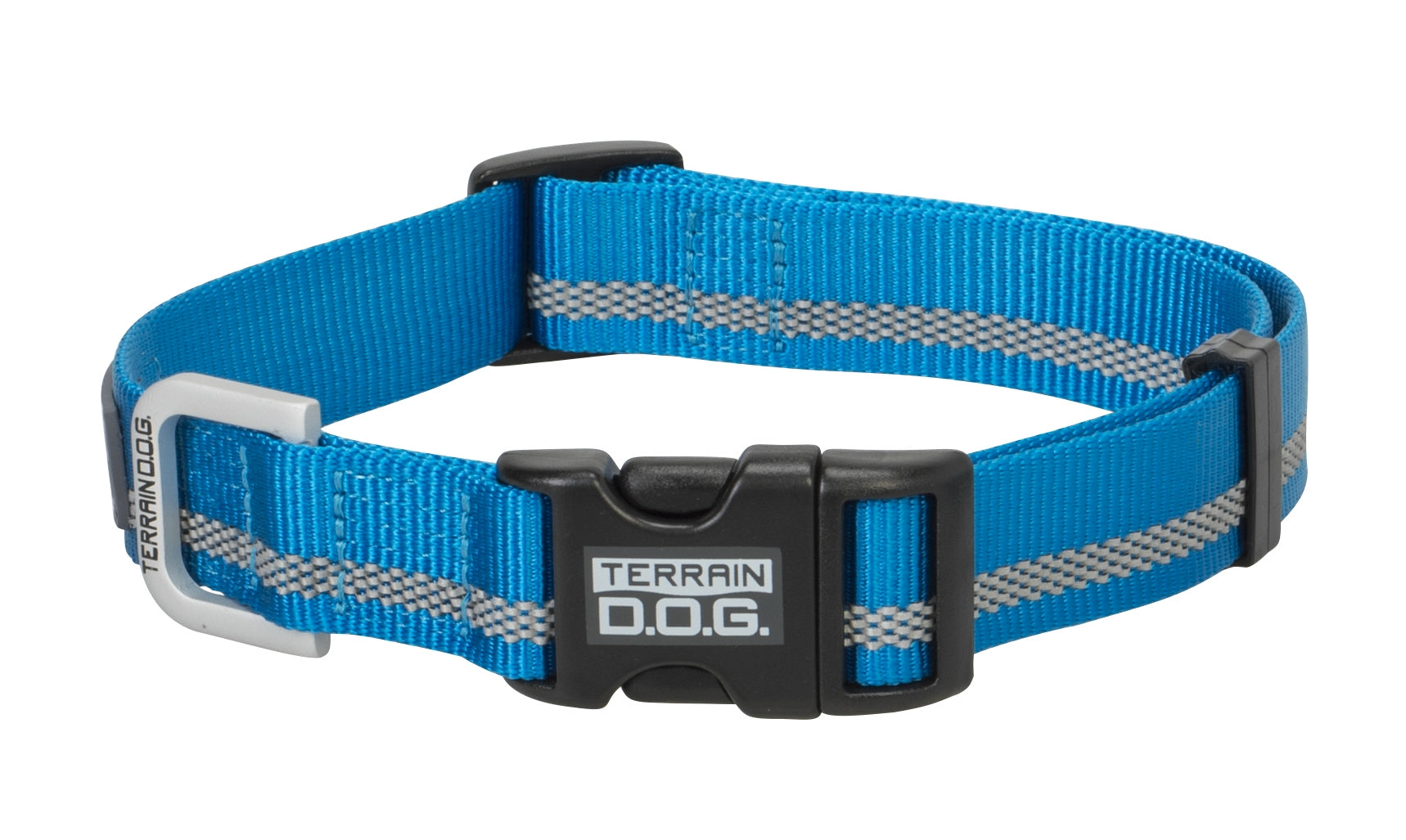Perfect for any active canine, this adjustable nylon collar features a woven-in reflective safety stripe and extra durable anodized aluminum dee for performance you can count on. A quick-release buckle lends on-the-go ease to this precise-fit, single-ply collar.