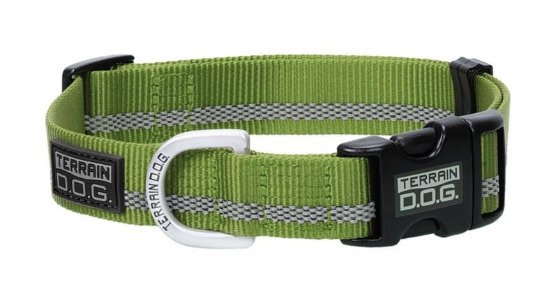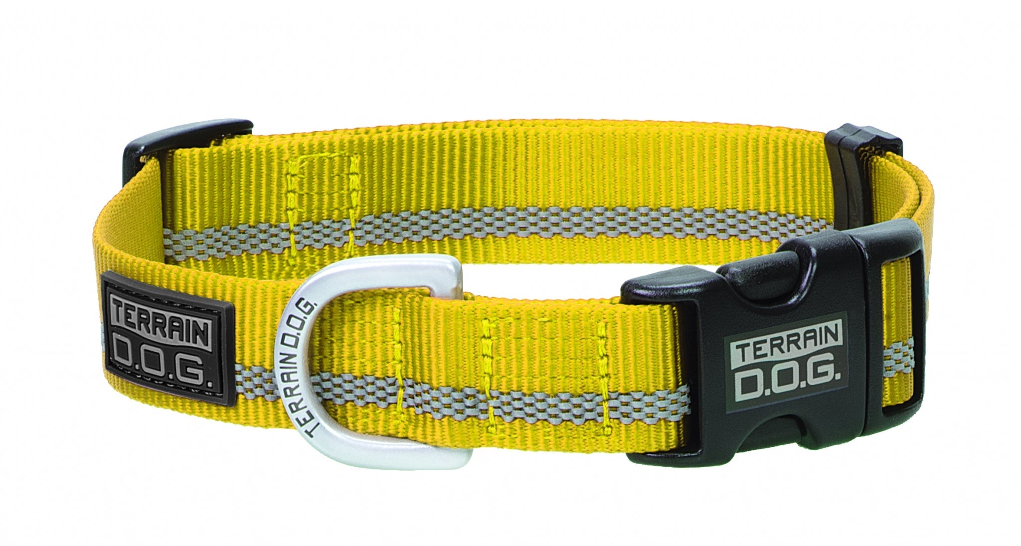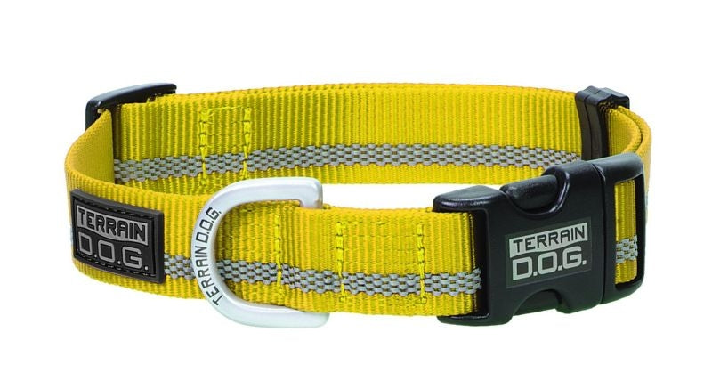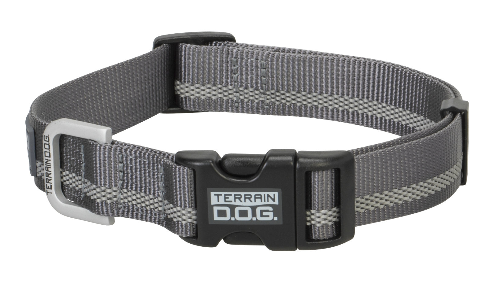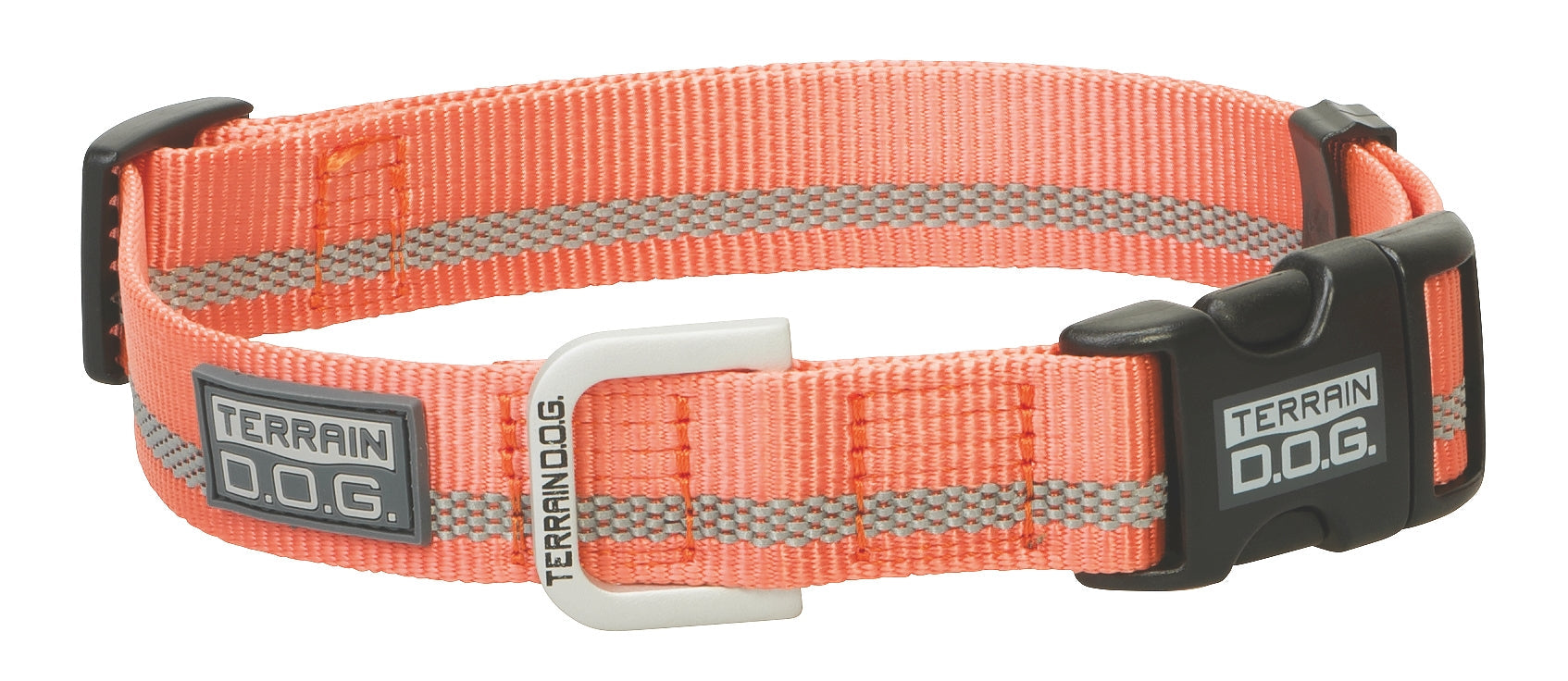 Perfect for any active canine, this adjustable nylon collar features a woven-in reflective safety stripe and extra durable anodized aluminum dee for performance you can count on. A quick-release buckle lends on-the-go ease to this precise-fit, single-ply collar.